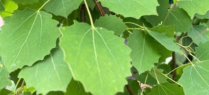Wie bei keinem anderen Baum bewegen sich die Blätter – klein eher rund mit stumpf gezähntem Rand – schon beim kleinsten Windhauch. Das wird unterstützt durch die langen elastischen seitlich abgeflachten Blattstile. Alle Pappeln nutzen dadurch die Windenergie, um mehr Feuchtigkeit zu verdunsten und somit mehr Wasser und Nährstoffe aus dem Boden zu ziehen.